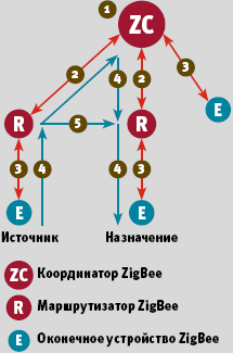 - Маршрутизаторы ZigBee включаются в сеть либо через координатор ZigBee или через другие, уже входящие в сеть маршрутизаторы