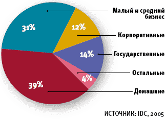 По данным исследований IDC, доля российского малого и среднего бизнеса в общих расходах на персональные компьютеры в 2005 году составила 31%. Больше всего потратили на закупку ПК в прошлом году