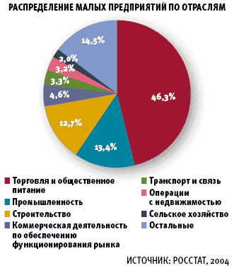 предприятий в промышленности сократилась до уровня 13,4%, в то время как в 2003 году она составляла 14,9%. Удельный вес небольших компаний в строительстве сократился с 14,5% в 2003 году до 11,1% в 2005 году. Наиболее заметно за последние два года выросло число малых предприятий в секторе операций с недвижимостью, в транспорте и связи, в сельском хозяйстве, а также компаний, занимающихся общей коммерческой деятельностью.