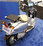 | Этот чудо-мотороллер с прикрепленным к нему ноутбуком на платформе Napa, оснащенным WiMAX-адаптером формата PC Card, вызвал настоящую бурю восторга у аудитории IDF |