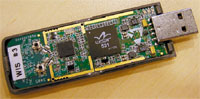 | В ходе IDF было представлено несколько прототипов устройств Certified Wireless USB. На снимке: так выглядит изнутри хост-адаптер в формфакторе USB-накопителя, выполненный на основе интегрированной микросхемы Wisair 531 (объединяет в себе функции MAC-контроллера и узкополосного процессора) и трансивера Wisair 502 израильской компании Wisair |