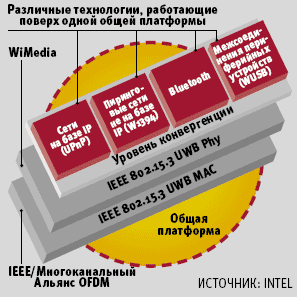Ее называют технологией сверхширокополосной передачи данных (ultrawideband, UWB) или импульсной цифровой беспроводной связью. Она будет применяться для доставки телевизионных программ, фильмов, игр и многомегабайтных файлов данных в «беспроводных» домах и офисах. UWB обладает более высоким быстродействием, чем современные беспроводные локальные сети, и обеспечивает формирование работающих на небольших расстояниях широкополосных каналов передачи данных, не чувствительных к внешним помехам.