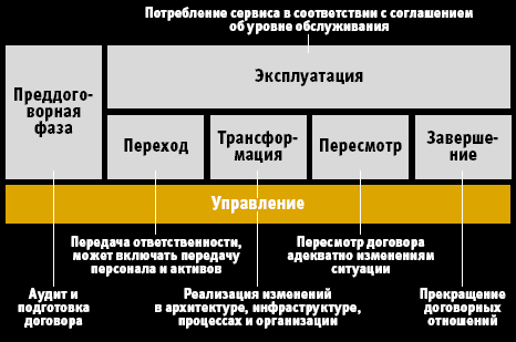 Как отметил Валерий Гущин, успех аутсорсинга невозможен без выстраивания целого комплекса мер по организации управления отношениями с подрядчиками, а также управления информационными и бизнес-процессами, которые охватывает аутсорсинг