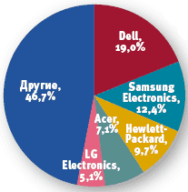ЖК-мониторов (74,7% от общего числа мониторов для настольных ПК). Аналитики отмечают очень быстрый рост продаж широкоэкранных мониторов и мониторов среднего размера (таковыми теперь считаются устройства с диагональю 19-21 дюйма).