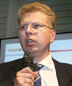 Объяснений столь резкого рывка (по сравнению с прошлым годом) было дано несколько. С одной стороны, он отчасти связан с оптимизацией продуктовой линейки, которую проводит Toshiba, поскольку в этом году неплохие итоговые цифры были получены и по региону EMEA в целом. У компании появились ноутбуки с диагональю 12 дюймов, в потребительском сегменте стали предлагаться исключительно широкоэкранные модели, появился новый класс ноутбуков — цифровые развлекательные центры. Как раз такой, «двухъядерный» ноутбук Qosmio G30, в котором впервые в мире установлен проигрыватель HD DVD, компания представила во время объявления промежуточных итогов. Его рекомендованная цена — почти 4 тыс. долл. В целом же позиционирование ноутбуков Toshiba стало более сбалансированным: в линейке присутствуют модели как для массового бюджетного сектора, так и для среднего сегмента и профессиональных потребителей.
