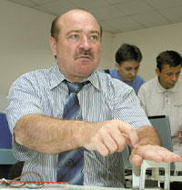 | Франц Капфенбергер демонстрирует возможности новой разработки Fujitsu |