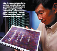 - Многие проекты связаны с безопасностью — в частности, те, которые направлены на борьбу с фальшивомонетчиками. Одна из технологий, носящая название Gloss Marks, позволяет за один проход печатать изображение, в которое встроено другое изображение, — это напоминает голограмму. Второе изображение нельзя скопировать. А изображение, содержащее элементы Correlation Marks, выглядит нормальным, но при наложении на него специальной маски перед нашим взором предстает секретное сообщение.