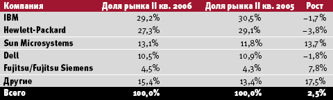 Самые высокие результаты показали небольшие компании, поставляющие специализированные серверы. Среди «большой пятерки» только Sun Microsystems и Fujitsu/Fujitsu Siemens имеют положительные показатели прироста