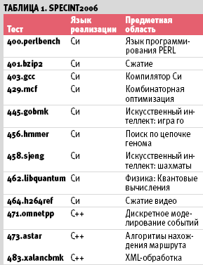 Состав тестов-компонентов SPECcpu является определяющим. В таблице 1 приведены компоненты SPECint2006, а в таблице 2 — SPECfp2006. Надо иметь в виду, что все эти тесты должны быть хорошо переносимы, т. е. успешно работать на различных типах компьютеров с различными операционными системами и компиляторами.