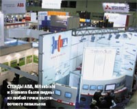 | Стенды ABB, Mitsubishi и Siemens были видны из любой точки выставочного павильона |