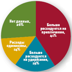 компании более охотно инвестируют в приобретение новых клиентов, чем в сохранение старых. Исследование показало, что основной задачей для половины организаций, имеющих call-центры, является сохранение лояльности клиентов. В то же время когда дело доходит до инвестиций, компании гораздо чаще вкладывают в приобретение новых клиентов, чем в сохранение старых.