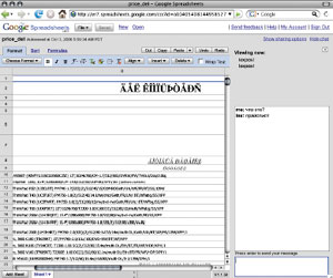 | Google Spreadsheets позволяет одновременно редактировать электронную таблицу десяти пользователям, при этом обеспечивая функции общения посредством размещаемого рядом с таблицами окна |