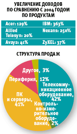 Структура продаж Landata заметно изменилась за несколько последних лет. Если ранее на телекоммуникационную часть продуктового портфеля приходилось до 70% оборота, то в прошедшем году этот показатель составил 42%. Почти столько же пришлось на доходы от продаж персональных компьютеров и серверов.