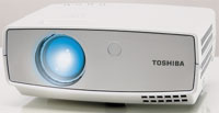 Для проведения выездных презентаций, когда докладчику не нужно выступать перед большой аудиторией, предлагается проектор Toshiba FF1. Являясь родоначальником нового класса проекторов, модель воплотила в себе такие технические новинки, как использование светодиодов сверх яркого свечения в качестве источника света. Благодаря этому проектор отличается очень малыми габаритами (135х55х100 мм) и весом (565 г). Кроме того, так как светодиоды потребляют электроэнергии значительно меньше, чем лампы накаливания, проектор Toshiba FF1 может работать автономно, питаясь от штатного аккумулятора. Полностью заряженный литий-ионный аккумулятор обеспечивает работу проектора на протяжении трех часов.