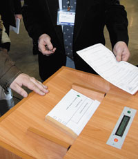 | Два новых механизма ГАС «Выборы» — система электронно-сенсорного голосования и SMS-информирование о прохождении выборов — были в этом году опробованы на выборах в Великом Новгороде |