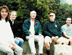 | Иногда онлайновое знакомство превращается в личное: Говард Рейнгольд в окружении своей «паствы» на прогулке |