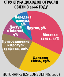 Аналитическое агентство iKS-Consulting сделало собственные предварительные оценки работы операторов связи в 2006 году. По расчетам аналитиков, в минувшем году емкость российского рынка услуг связи должна превысить 28 млрд. долл., что согласуется с официальными данными, озвученными в конце декабря Мининформсвязи РФ (745 млрд. рублей). Впервые за постсоветский период развития отечественной экономики наши аналитики стали сравнивать доходы высокотехнологичного сектора с оборотом крупнейших европейских операторов. Так, в 2005 году выручка Telecom Italia составила 30 млрд. евро (35,7 млрд. долл.), а Deutsche Telecom — 59 млрд. евро (70,2 млрд. долл.). Однако, как подчеркивают в iKS-Consulting, наш телекоммуникационный рынок характеризуется значительно более высоким потенциалом роста: за 2005 год его прирост составил 23%, а за 2006-й может достичь 20-22%. Западная Европа по этому показателю от нас серьезно отстает.