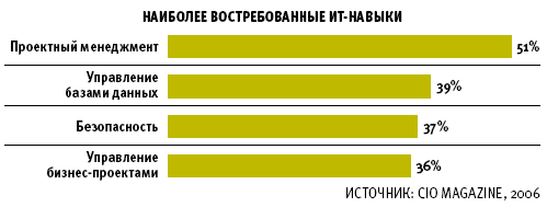 не радовать, 89% ИТ-директоров считают, что инновации являются существенной частью их роли внутри организации. В свете последних веяний «ИТ-моды» чрезвычайно высок спрос на ИТ-директоров с опытом внедрения сервис-ориентированной архитектуры. Наибольшая концентрация таких специалистов наблюдается в области высокотехнологичного производства (41%), тогда как в среднем этот показатель не превышает 4%