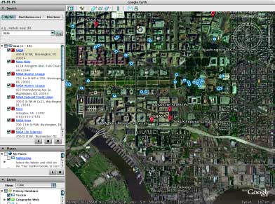 Первым результатом совместной деятельности Google и NASA является картографическое приложение Google Earth, данные и графическая информация для которого предоставляется NASA. Обращение к изображениям и данным Google Earth стало возможным в результате реализации проекта Global Connection Project, в котором принимают участие Университет Карнеги-Меллона, NASA, Google и Национальное географическое общество США.