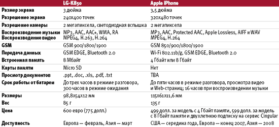 Сравнение же технических характеристик показывает превосходство аппарата Apple по ряду параметров — в первую очередь, по разрешению экрана, возможностям передачи данных и объему встроенной памяти, хотя у Prada есть, по крайней мере, одна особенность, которой не хватает iPhone, — слот для карт памяти. Впрочем, учитывая большой объем встроенной памяти iPhone, для многих пользователей это не является существенным ограничением.