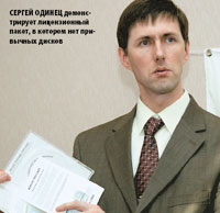 | Сергей Одинец демонстрирует лицензионный пакет, в котором нет привычных дисков |