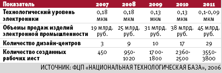 Цели, прописанные в программе, предусматривают достижение 50-процентной доли российских компаний на рынке специальной электроники и доли до 15% на «гражданском» рынке. Объем бюджетного финансирования до 2011 года составит 23,2 млрд. рублей. Из них 15,8 млрд. рублей будет израсходовано на НИОКР, а 7,3 млрд. придутся на капитальные затраты в создание современных дизайн-центров.