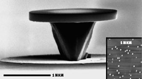 Исследование, проводимое специалистами группы учреждений во главе с Национальным институтом стандартов и технологий США, обещает со временем дать возможность создания излучателей лазера микроскопических размеров с уровнем энергопотребления менее 1 мкВт. Ученые развивают предложенную несколько лет тому назад идею лазеров на квантовых точках — микрорегионов в кристаллических структурах, способных захватывать в «ловушку» электроны, которые при переходе между энергетическими уровнями излучают свет. Исследователям удалось изготовить микродисковый лазер путем наслоения арсенида индия на арсенид галлия. Из-за разницы в размерах атомной решетки каждого из этих веществ образуются «острова» арсенида индия диаметром примерно по 25 нм, действующие в качестве квантовых точек. Из двухслойной структуры экспериментаторы вытравили диск диаметром 1,8 мкм, содержащий около 130 квантовых точек.