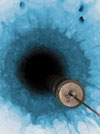 Американцы продолжают осуществление проекта по возведению во льдах Антарктиды крупнейшего в мире нейтринного телескопа АМANDA. По завершении он будет состоять из двух частей — подземной IceCube и надземной IceTop. Первая частично готова — она создается путем «бурения» горячей водой во льду глубоких (порядка 2 км) каналов и помещения туда детекторов света (на фото). Надземная часть, предназначенная для регистрации «ливней» космических лучей, состоит из двух контейнеров с водой с двумя фотодетекторами в каждом. Воду необходимо заморозить таким образом, чтобы во льду не оставалось трещин и пузырьков воздуха. Когда нейтрино проходит сквозь лед, частицы сталкиваются с молекулами льда, в результате чего возникают частицы другого типа — мюоны. Они создают слабую вспышку света, которая и регистрируется фотодетекторами.