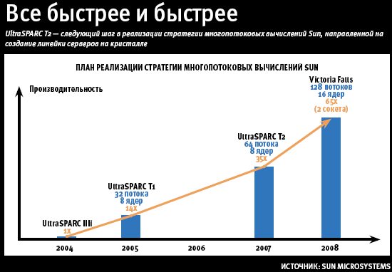 Как подчеркнул Анни, UltraSPARC T2 — следующий шаг в реализации стратегии многопотоковых вычислений Sun, направленной на создание линейки серверов на кристалле.