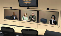 Экраны Halo на каждой из сторон показывают четкое изображение участников в натуральную величину, создавая эффект присутствия всей команды в одном помещении. По высокоскоростному выделенному каналу, соединяющему две части съемочной группы, для режиссера транслировались свежесозданные фрагменты фильма, и даже запись голоса для персонажа, которого озвучил сам Сейнфелд, он провел дистанционно