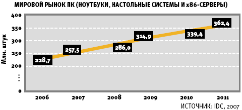 Согласно опубликованному компанией IDC ежеквартальному исследованию Worldwide Quarterly PC Tracker, в 2007 году поставки персональных компьютеров в мировом масштабе должны возрасти на 12,6% и достичь 257,5 млн. штук. Данный прогноз чуть выше предыдущего прогноза IDC, что связано с ростом поставок портативных компьютеров на 28% по сравнению с прошлым годом. Переход к мобильным компьютерам останется основным движущим фактором роста. Поставки портативных компьютеров составят более половины стоимости всех поставок в 2007 году, а к 2009 году — более половины физических объемов.