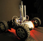 Четырехколесному роботизированному луноходу Scarab не суждено покинуть поверхности Земли: он построен специалистами Университета Карнеги-Меллона под руководством профессора Уильяма Уитекера по заказу NASA в качестве платформы для «обкатки» технологий, которые впоследствии найдут применение в настоящих луноходах. Scarab спроектирован в расчете на решение двух конфликтующих на первый взгляды задач: ему необходимо быть способным пройти многие километры по песчано-каменистой лунной поверхности, но в то же время он должен обладать достаточной устойчивостью, чтобы воспользоваться буровым станком на борту. Чтобы робот мог продержаться многие месяцы в полной темноте, в качестве источника энергии для него решено использовать радиоизотопный элемент питания, а для навигации он применяет малоэнергоемкие лазерные датчики. Специальная подвеска позволяет Scarab приподниматься над поверхностью на высоту до 50 см, чтобы пропускать под собой камни. Недавно профессор Уитекер объявил о своем новом проекте: он собирает команду для участия в конкурсе, учрежденном компанией Google, которая обещает приз в виде 20 млн. долл. тем, кто сумеет до 2012 года высадить на Луну автоматический аппарат с роботизированным луноходом.