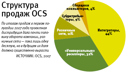 В сфере массовой дистрибуции руководству OCS легче находить цели, здесь она не является лидером, но намерена стать таковым. В текущем году началась серьезная работа с федеральными розничными сетями бытовой электроники. И хотя «работать с ними невероятно трудно», по оценке Сорокина, на ритейл в перспективе будет приходиться 80-90% продаж розничного товара.