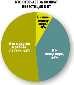 Только при хороших отношениях ИТ и бизнеса можно говорить о партнерстве, приводящем к эффективному взаимодействию. По результатам исследования редакции CIO Magazine, 52% ИТ-директоров считают, что ИТ-службы и бизнес-подразделения в равной степени отвечают за возврат инвестиций в технологии, 40% полагают, что ответственность несут только они, а 8% уверены, что извлечение ROI — забота исключительно бизнеса. Действительно, без совместной работы максимальной эффективности внедренных решений добиться трудно. К сожалению, это понимают чуть больше половины компаний.