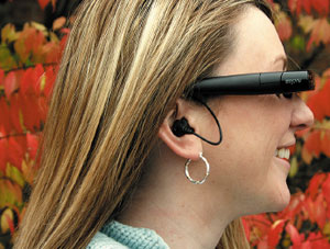 Компания Myvu, создатель одноименного «персонального кинотеатра», заключила партнерский договор с фирмой Ultimate Ears, благодаря которому очки myvu стало можно заказывать с наушниками индивидуального пользования. Myvu подключается к источнику видеосигнала и выводит картинку на дисплеи, установленные в «очках» вместо стекол. Имеется специальная модель для iPod video, есть вариант Universal Edition, который можно подключать к портативным DVD-проигрывателям и мультимедиа-плейерам, а также к некоторым мобильным телефонам.