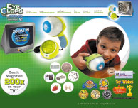 Детский микроскоп EyeClops Bionic Eye подключается к телевизору, позволяя на его экране увидеть разглядываемый образец в 200-кратном увеличении. Устройство состоит из «глаза» и процессорного модуля под названием Brain («мозг»). В комплект входят две подставки для образцов: «блюдце» и «стакан», — последний предлагается использовать для наблюдения за насекомыми. Микроскоп позволяет подстраивать резкость изображения, но не дает возможности менять степень увеличения. Образец освещается светодиодами. Устройство может работать только от батареек АА. Обозреватели сообщают, что даже на экране стандартного телевизора разглядываемые с помощью EyeClops образцы выглядят довольно четко.