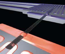В Национальной лаборатории им. Лоуренса в Беркли (США) найден способ радикально повысить термоэлектрические свойства кремния. Выяснилось, что этот полупроводник становится весьма эффективным термоэлектриком, когда из него делают «шероховатые» нанопроволоки. Исследователи указывают, что пока не понимают физику обнаруженного явления, но сообщают, что видят широчайшие возможности для его использования в деле преобразования теряемого тепла в электричество. Например, термоэлектрогенератор мог бы стать дополнительным источником энергии в автомобиле, пользуясь нагреванием его двигателя, а тепло тела человека можно было бы использовать для подзарядки устройств портативной электроники. На иллюстрации — кремниевая нанопроволока между двумя нагревательными элементами.