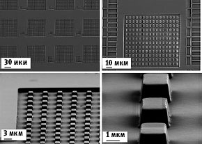 Один из этапов процесса литографии состоит в помещении на полупроводниковую основу тонкой полимерной пленки — «перераспределительного слоя», который ускоряет процесс травления и блокирует посторонние механические и химические воздействия. Специалисты Ренсселеровского политехнического института и компании Polyset объявили о разработке такого полимера нового вида. Он высыхает и затвердевает при более низких температурах, обладает меньшим уровнем поглощения влаги и хорошо сцепляется с медью. Кроме того, новый полимер можно использовать как в традиционной фотолитографии, так и в процессе нового поколения, находящемся в экспериментальной стадии, — наноимпринтной ультрафиолетовой литографии (фото демонстрирует качество элементов микросхемы, формируемых данным способом с применением нового полимера).