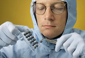 Исследование, проведенное в Национальном институте стандартов и технологий США, показало возможность повышения компактности радиопередатчиков за счет использования «метапленок» — пленок из метаматериалов, рукотворных композитных веществ с не встречающимися в природе электромагнитными свойствами. Основной габаритный размер резонатора — элемента, используемого в радиоприборах для настройки на излучение или прием определенных частот, должен составлять не менее половины нужной длины волны. Так, для сотового телефона гигагерцевого диапазона длина резонатора составит около 15 см. Если же поместить внутри резонатора метапленку, она будет сдвигать фазу волны, рикошетирующей между его стенками, что позволит при гораздо меньших размерах элемента сохранить эффект резонанса. (На фото: иттриево-железные сферы, используемые для изготовления метапленок)