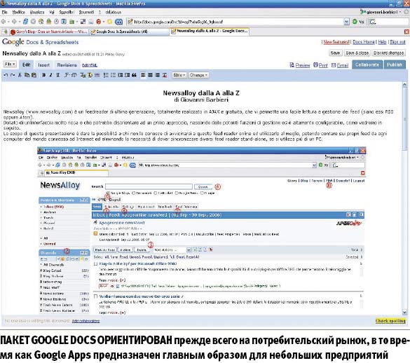 Бесплатный программный пакет Google Docs доступен любому пользователю, который зарегистрировался в Google. Он ориентирован прежде всего на потребительский рынок, в то время как пакет Google Apps предназначен главным образом для эксплуатации на рабочих местах и набирает популярность среди небольших предприятий.