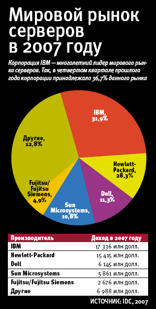 В четвертом квартале 2007 года корпорация IBM, по данным IDC, лидировала по мировым продажам серверов, ей принадлежало 36,7% данного сегмента рынка. Рост этого показателя на 0,5% по сравнению с тем же периодом 2006 года обеспечили корпорации в основном серверы стандартной архитектуры System x, а также System p.
