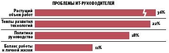 Как выяснилось, 36% озабочены растущими объемами работы, а 22% — темпами развития технологий. Еще 18% недовольны политикой руководства, а 11% — балансом работы и личной жизни. Сам по себе растущий объем задач не слишком страшен, особенно в условиях кризиса. Он говорит о важности роли ИТ-подразделений. Однако в совокупности с прочими упомянутыми факторами, а также жесткими бюджетными ограничениями он способен негативно воздействовать на моральное состояние сотрудников. Это, в свою очередь, приведет к снижению эффективности их работы. Судя по всему, макроэкономический фактор просто не был включен в опрос. Однако следует отметить, что опрос отражает мнение лишь американских ИТ-руководителей. По мнению экспертов, для европейцев политика руководства и баланс между работой и личной жизнью должны играть более важную роль.