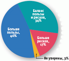 Руководство большинства компаний уверено, что к 2013 году сотрудники компаний будут настолько технически подкованными, что смогут без проблем работать со всем информационным инструментарием. Оптимизм относительно этого выразило 82% бизнес-руководителей, опрошенных PricewaterhouseCoopers. В крайнем случае персонал будет способен освоить нужные ИТ-решения в кратчайшие сроки. В том числе речь идет и о сотрудниках низшего уровня. Тем не менее повышение роли технологий и растущая техническая грамотность персонала вызывают и определенную озабоченность. Значительная часть руководителей видит в этом рост рисков для компании. Однако большинство признает, что польза от технически грамотных сотрудников гораздо больше возникающих рисков.