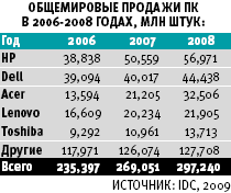По данным IDC, мировые отгрузки ПК в четвертом квартале 2008 года упали на 0,4% по сравнению с аналогичным периодом 2007 года и на 2,5% по отношению к третьему кварталу 2008 года, тогда как за предшествовавший шестилетний период, начиная со второго квартала 2002 года, показатели только росли в среднем на 15% ежегодно. Рынок не спасли ни дешевые нетбуки, ни конкуренция среди поставщиков, ни праздничные распродажи — кризис в сегменте ПК вышел за пределы США, при этом сокращение объемов реализации будет прослеживаться как минимум до 2010 года. Вместе с тем общегодовые показатели мировых объемов продаж ПК выросли на 10,5% по сравнению с 2007 годом — до 297,24 млн штук.