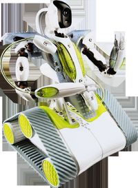 Роботы в заводских цехах уже никого не удивляют, но теперь они все активнее проникают в быт, способны не только развлекать, но и охранять дом, показывать покупателям, как пройти к нужному отделу в торговом центре, обучать иностранным языкам. Робот E3 компании Roboware напоминает космонавта в скафандре. Он предназначен как для развлечения, так и для обучения. Робот воспроизводит музыку и реагирует на голосовые команды, приказывающие ему потанцевать или переместиться с места на место. Робот способен с помощью встроенной камеры различать предметы, а на одной из недавних презентаций даже приносил ее участникам банки с пивом. Вдобавок ко всему робот снабжен некоторыми охранными функциями. Он может реагировать на экстренные вызовы и транслировать изображение со своей камеры зрителям на расстоянии.