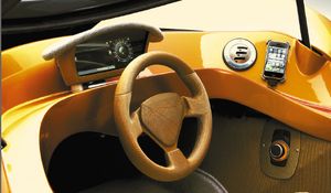 Ключом зажигания в нем служит iPhone. Водитель вставляет его в специальный разъем на приборной доске, и на экране телефона появляется зеленая кнопка «Пуск». Одно касание включает двигатель. Через телефон можно управлять и некоторыми другими функциями — например, включать и выключать фары.