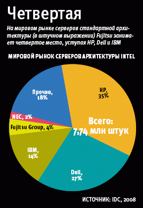 В Японии Fujitsu является лидером серверного рынка в целом, однако в сегменте серверов так называемой стандартной архитектуры занимает четвертое место, уступая не только японской NEC, но даже американским HP и Dell.