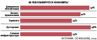 Согласно последним результатам опроса, регулярно проводимого редакцией CIO Magazine, доля ИТ-руководителей, планирующих сокращение бюджетов, достигла 53%. При этом 59% остановили набор ИТ-персонала, несмотря на наличие незакрытых вакансий, а 34% начали проводить сокращение штата. О снижении заработных плат заявляют 35% респондентов. Главной причиной сокращения издержек называется то, что ИТ-бюджет попал в «зону пристального внимания» со стороны бизнес-руководства. Экономия на персонале является одним из наиболее быстрых и очевидных способов обеспечить снижение ИТ-расходов. Другим наиболее значимым направлением экономии является сокращение портфеля ИТ-проектов, о котором говорит половина опрошенных.