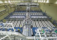 Лазерная установка располагается в десятиэтажном здании размером со стадион. На мишени установки сходятся 192 отдельных лазерных луча, каждый сечением примерно в 40 кв. см. Предполагается, что гигантский объем энергии, выделяемый за миллиардные доли секунды, сможет запустить управляемую термоядерную реакцию. Термоядерные реакции в лаборатории Лоуренса изучают со времен ее основания. Еще во времена холодной войны она сыграла важную роль в создании водородной бомбы. Ученые надеются, что результаты исследований приблизят их к созданию новых источников энергии и материалов, а также позволят лучше понять строение звезд и планет-гигантов.