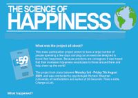 Все желающие принять в нем участие в середине августа были приглашены посетить сайт Science of Happiness. На нем посетителю сначала предлагалось ответить на несколько вопросов о его нынешнем настроении, а затем демонстрировалось видео с показом простых упражнений по его поднятию. Участникам эксперимента было рекомендовано проделывать упражнения ежедневно в течение недели, а затем вернуться на сайт и снова ответить на вопросы, оценивающие их уровень настроения. Никто еще не пытался поднять настроение сразу всей стране, говорит ученый, и сейчас, когда всех заботит ситуация в экономике, самое время этим заняться. Может быть, хорошее настроение участников эксперимента передастся и другим.